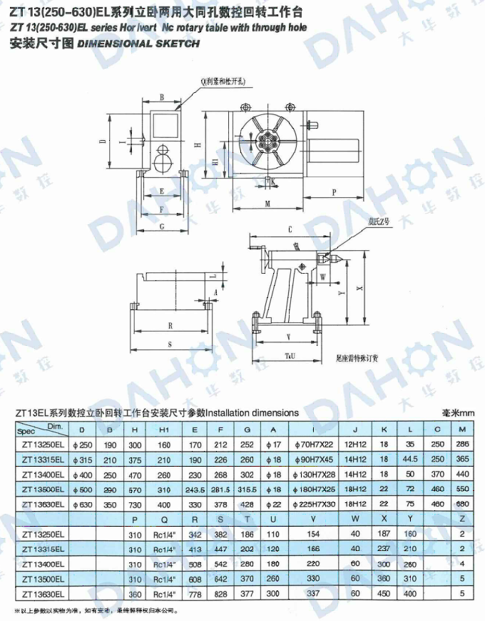 第四軸是各類數控鏜、銑床和加工中心的關鍵配套附件,可以主軸垂直和水平兩種方式安裝在主機工作臺上,用作主機的第四回轉軸。轉臺在主機相關控制系統控制下, 可實現等分的和不等分的孔、槽或者連續特殊曲面的加工,且保證很高的加工精度。 ZT 13E series Hor /vert NC rotary table can carry out the performance of direct and indirect dividing plate proc essing, plateslotting and various cam-curving